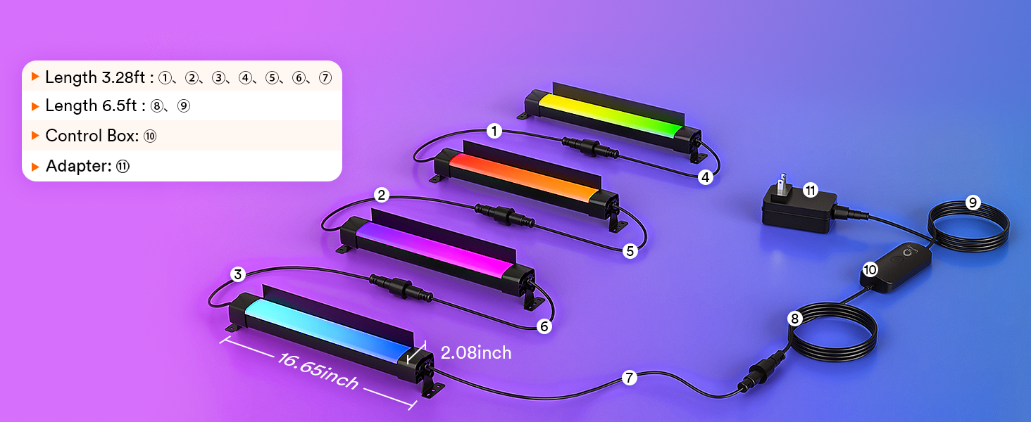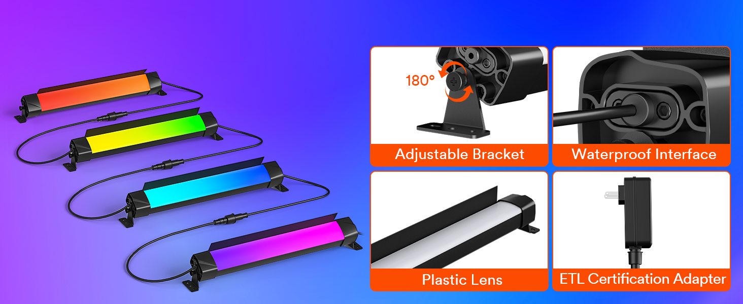 Dynamic RGBAI Effect: 6 individually controllable segments per light for vivid color effects and extensive DIY options.