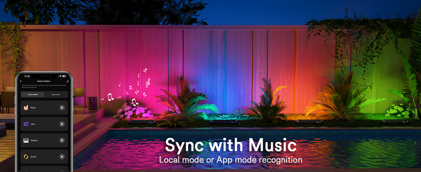 Music Synchronization: Lights sync with music rhythms from your phone or surrounding sounds in local or app mode.