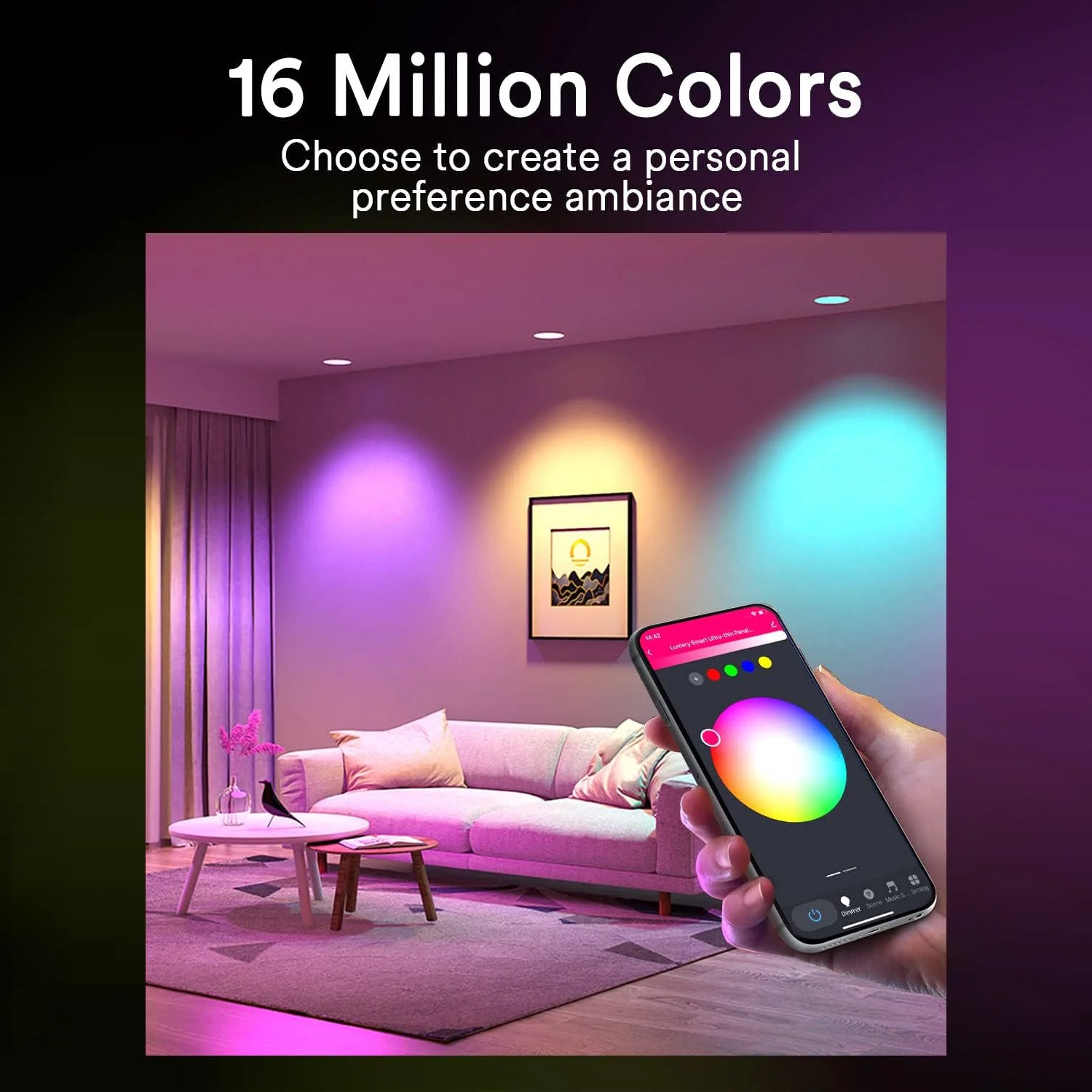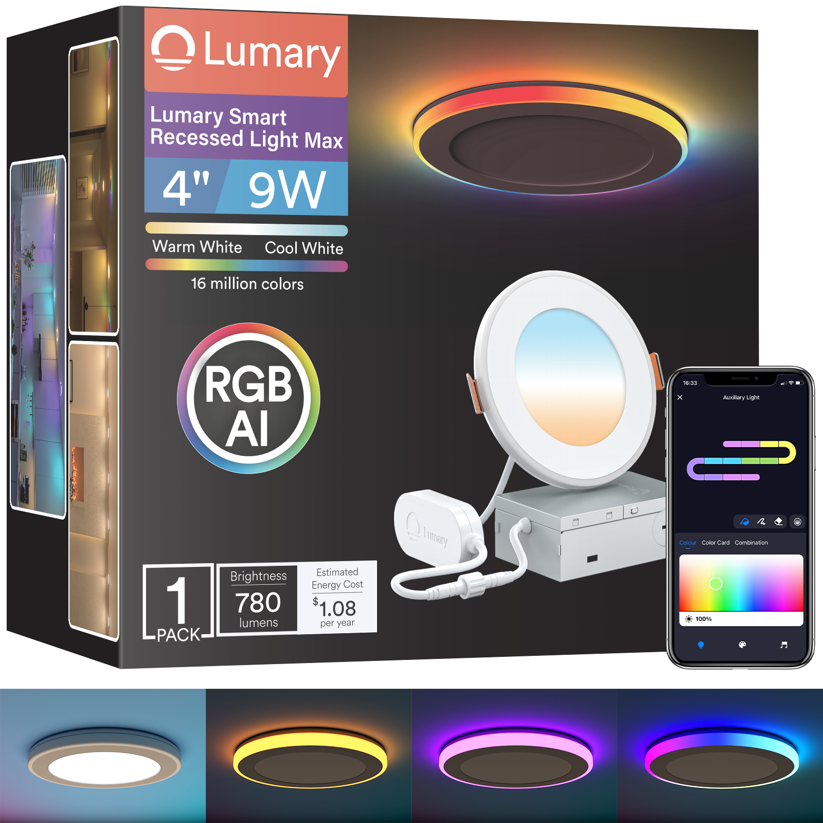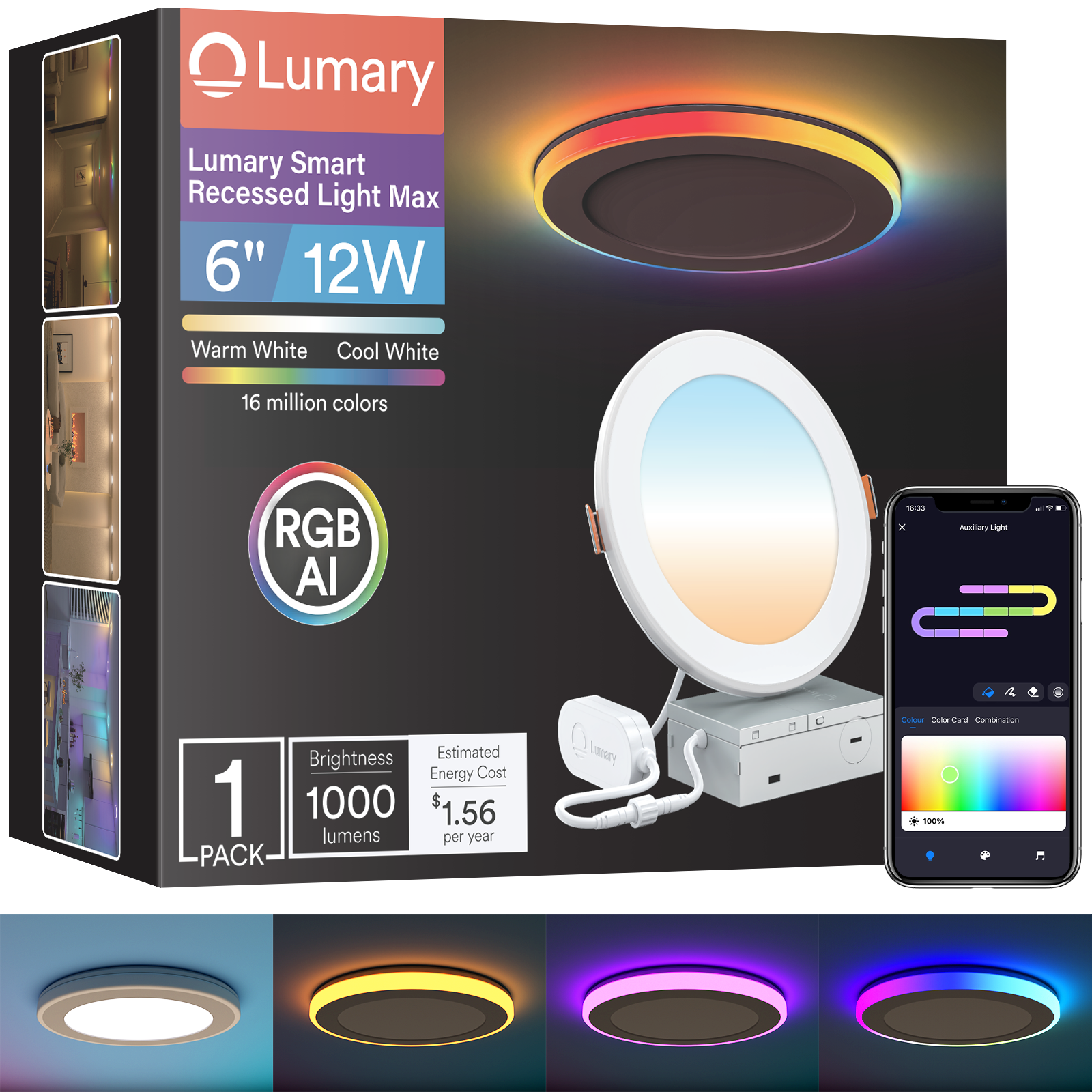 - Lumary Smart RGBAI Recessed Light with Night Light (4" & 6"): Ideal for bedrooms, hallways, and entertainment areas. Create vibrant colorscapes or set a soothing night light with millions of color options.