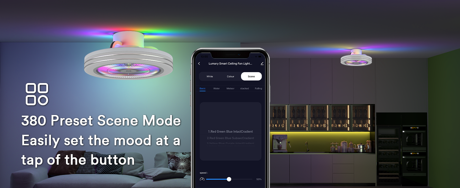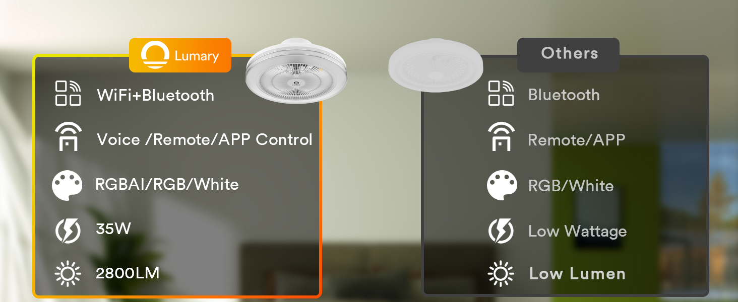 380 Dynamic Lighting Effects: Lumary's RGBAI technology offers 380 scene modes, giving you endless options for colorful lighting based on your mood or setting.