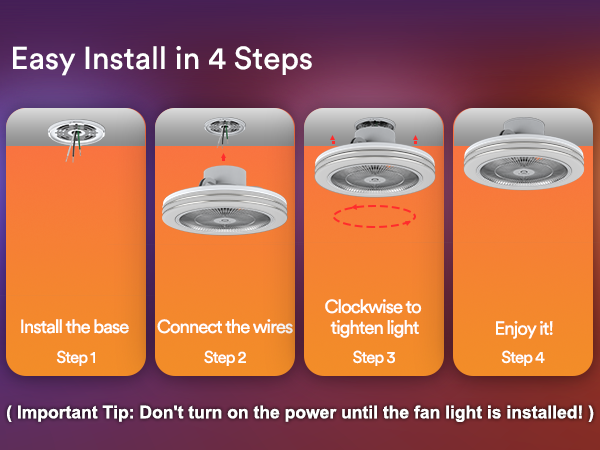 Timer & Memory Functions: Set the fan and light to turn off after 1 or 4 hours. It also remembers your last settings for fan speed and lighting.