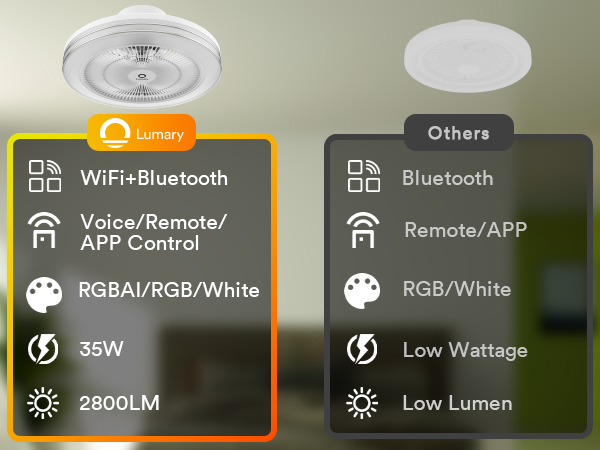 APP Control: Control the ceiling fan remotely via the Lumary app (2.4GHz WiFi only) whether you're at home or away.