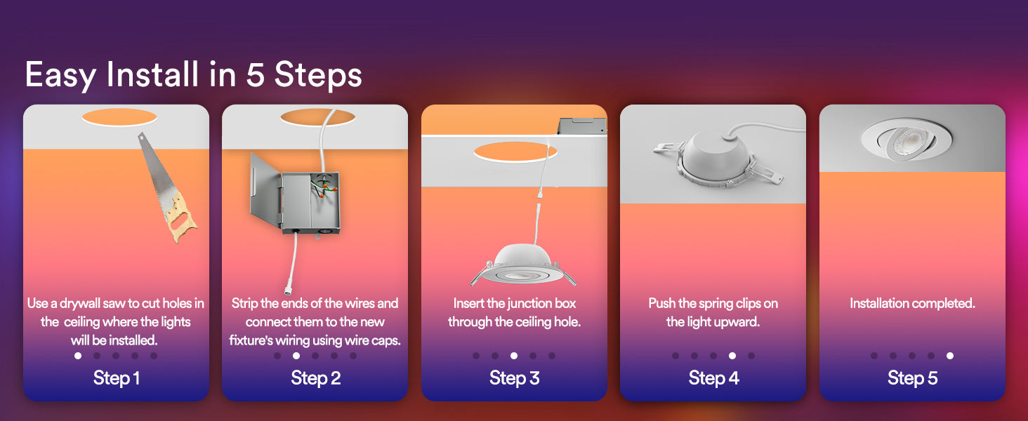 Adjustable Angle: The gimbal light’s 40° rotation allows for precise lighting adjustments, perfect for soffits, kitchens, and bedrooms.