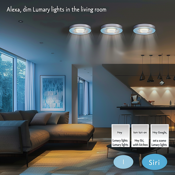 Simply issue commands like "Alexa, dim Lumary lights in the living room" for effortless customization.
