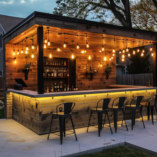 For those looking to create a cozy and inviting atmosphere, string lights are an excellent choice. These versatile lights can be draped overhead, casting a warm glow over your outdoor bar space. They are perfect for adding a magical ambiance to late-night gatherings or intimate dinners.
