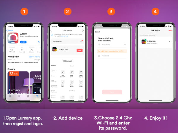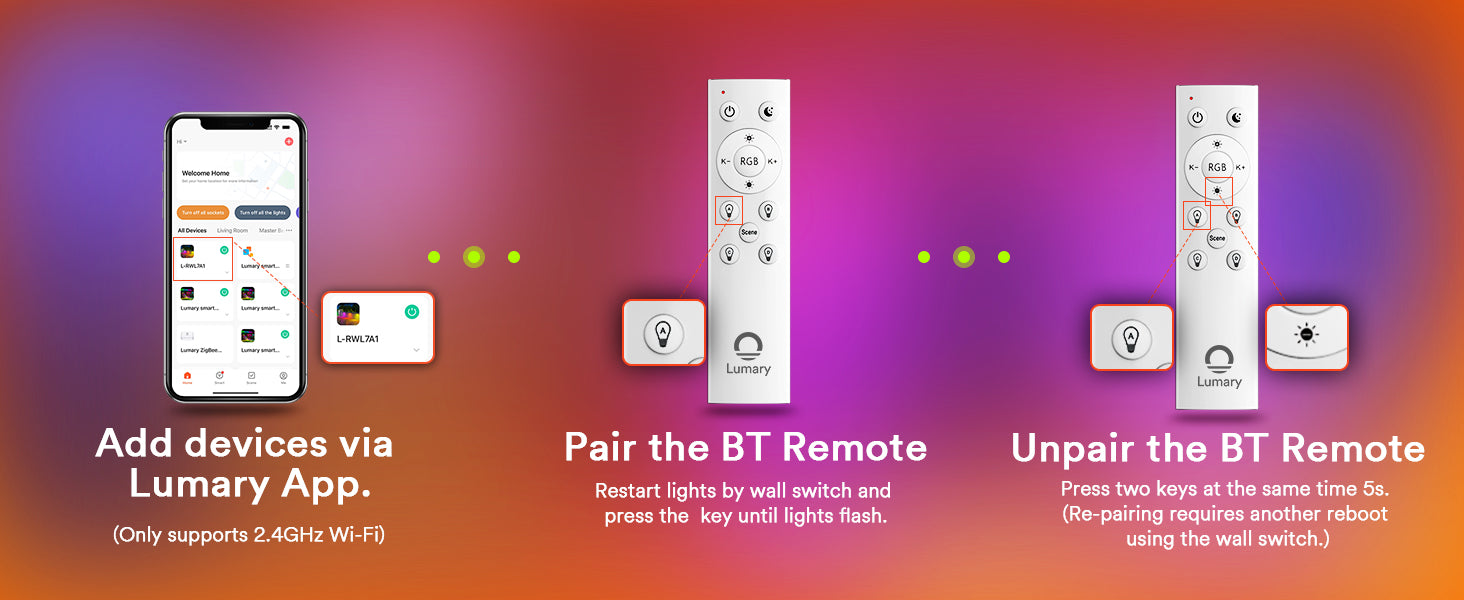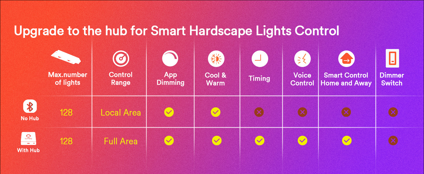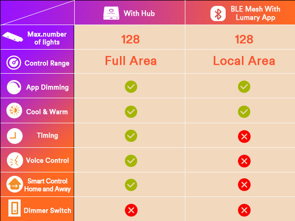 Multiple Control Methods: Control via voice (Alexa/Google Assistant, hub required), Lumary App, or remote control for versatile operation.