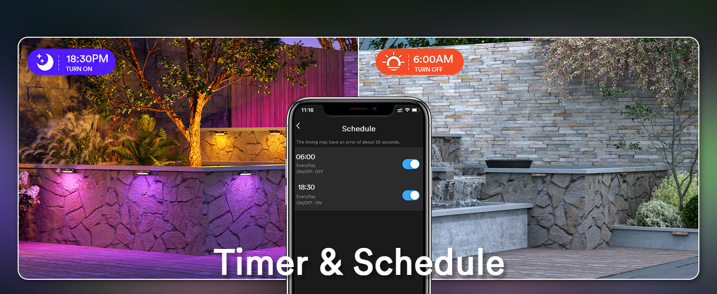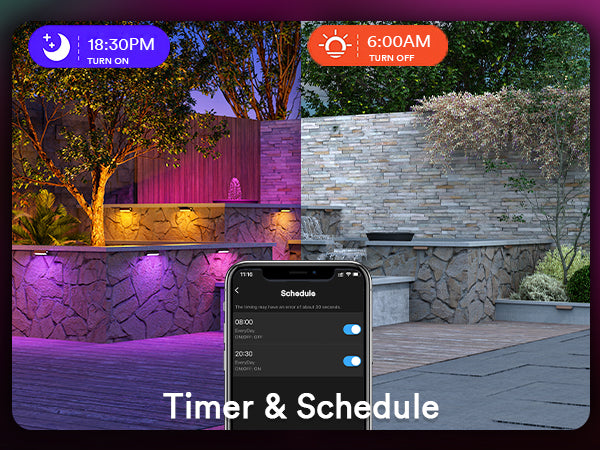 Timing & Remote Control: Schedule on/off times and manage remotely through the app (hub required).