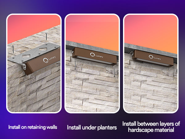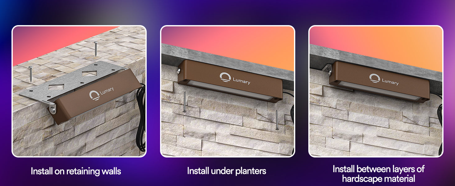Flexible Installation: Install traditionally with screws or directly without the baffle, with 270° rotation. Suitable for steps, retaining walls, fire pits, and more.