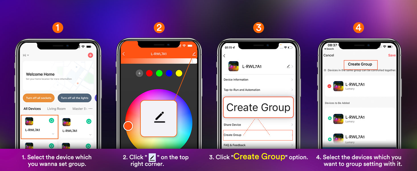 Group Function: Group multiple lights for simultaneous control.