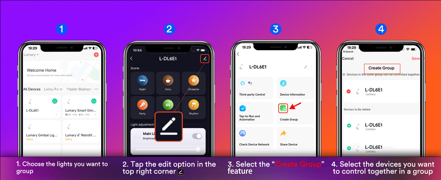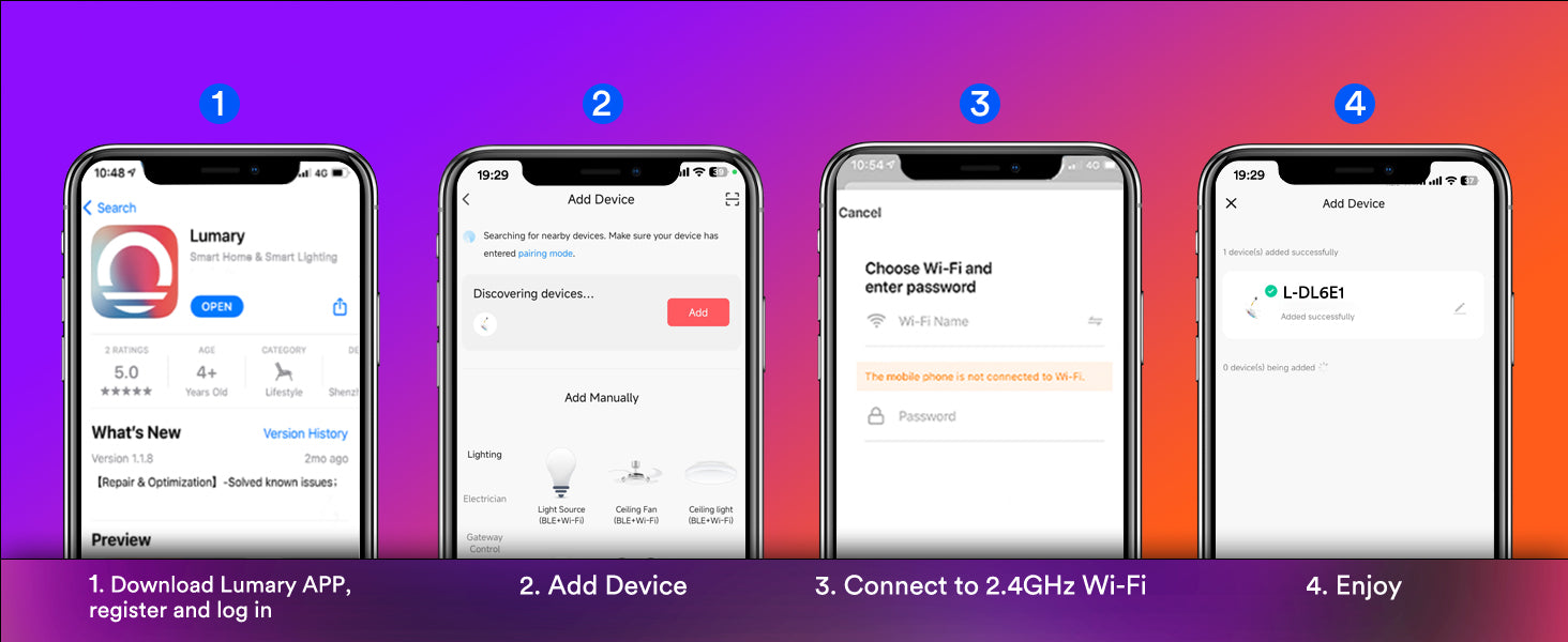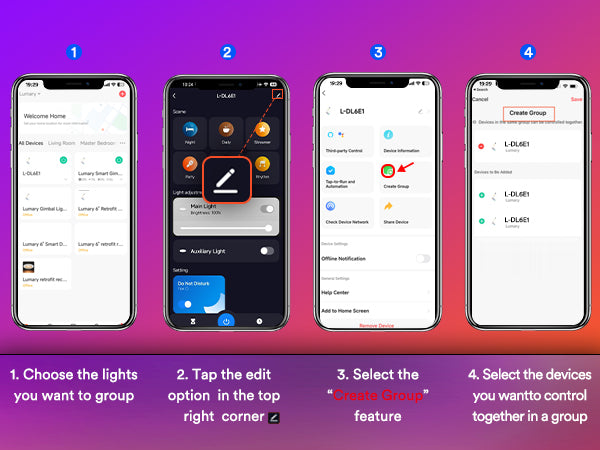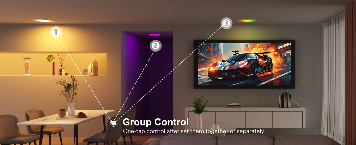 Group Control & Device Sharing: Create lighting groups for different rooms, control multiple devices at once, and share control with family members through the Lumary app. With memory function, your last setting is retained even when the light is turned off and on again.