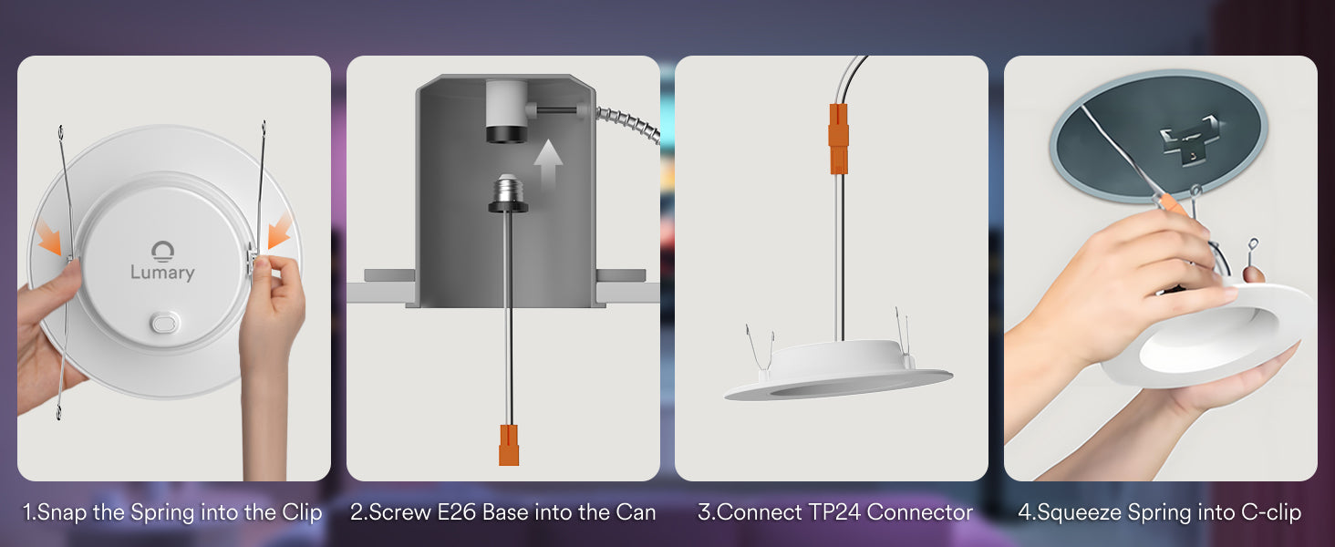 Easy Installation: Designed for quick retrofit into existing 5/6" cans. Simply snap the spring clips into place and secure them for a seamless installation in kitchens, bedrooms, bathrooms, and more. Suitable for wet locations.