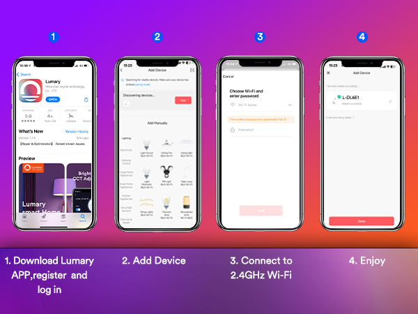 Effortless Smart Home Integration: Control your lights with the Lumary app, Alexa, or Google Assistant. Set schedules for sleep, wake, or work, and let the lights remember your preferences. Compatible with 2.4 GHz Wi-Fi.