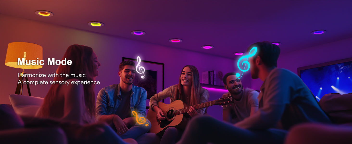 Music Sync: Lights pulse to your music, changing colors in rhythm for an immersive, party-ready experience.
