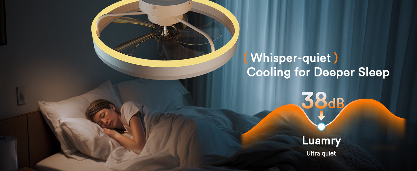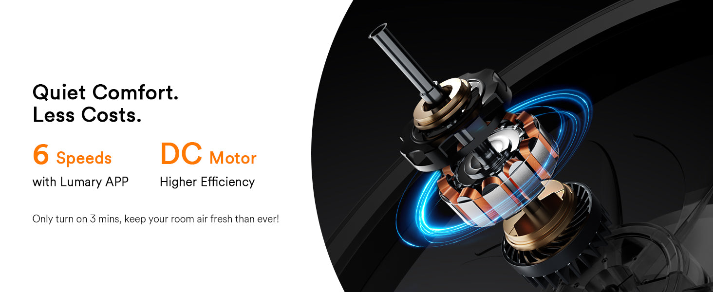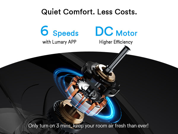 Ultra-Quiet Operation:Enjoy peace and quiet with an ultra-quiet DC motor, operating at just 38 decibels—so quiet, it’s softer than a whisper. Perfect for bedrooms, nurseries, home offices, and study spaces, ensuring undisturbed sleep, work, or relaxation.