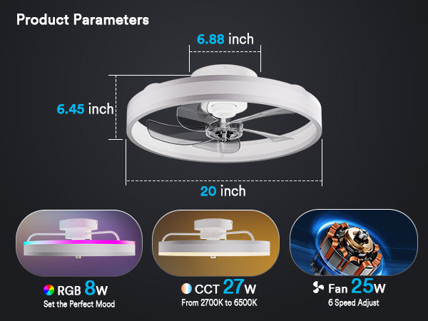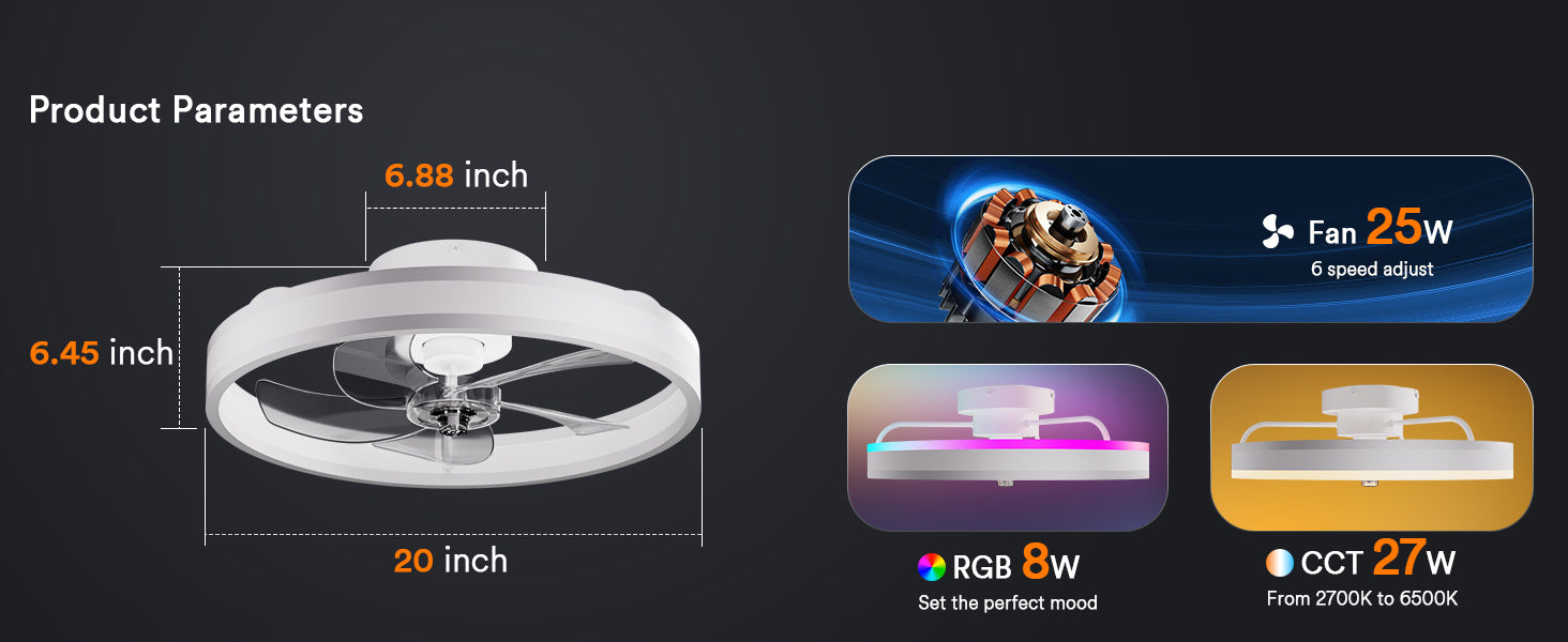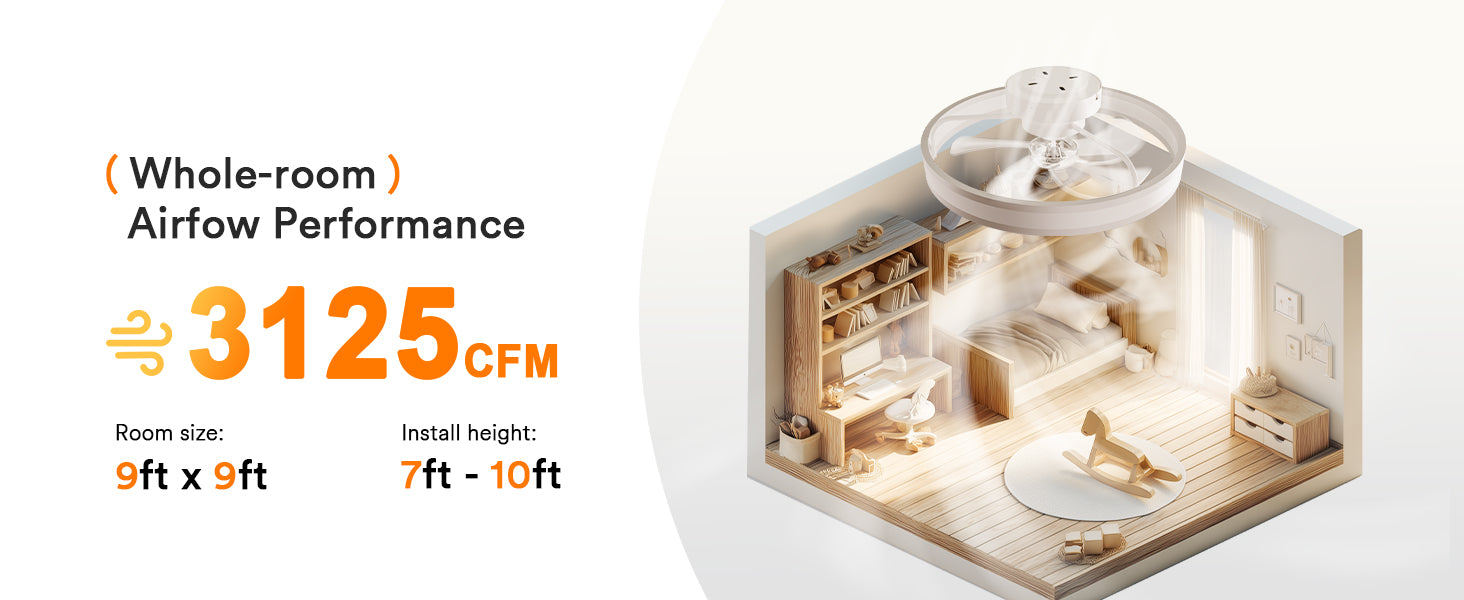 Designed for Low Ceilings:Ideal for rooms with 8ft or lower ceilings, this sleek, low-profile ceiling fan sits close to the ceiling, saving space while ensuring optimal airflow and bright lighting. A great fit for small bedrooms, apartments, offices, and cozy living spaces.