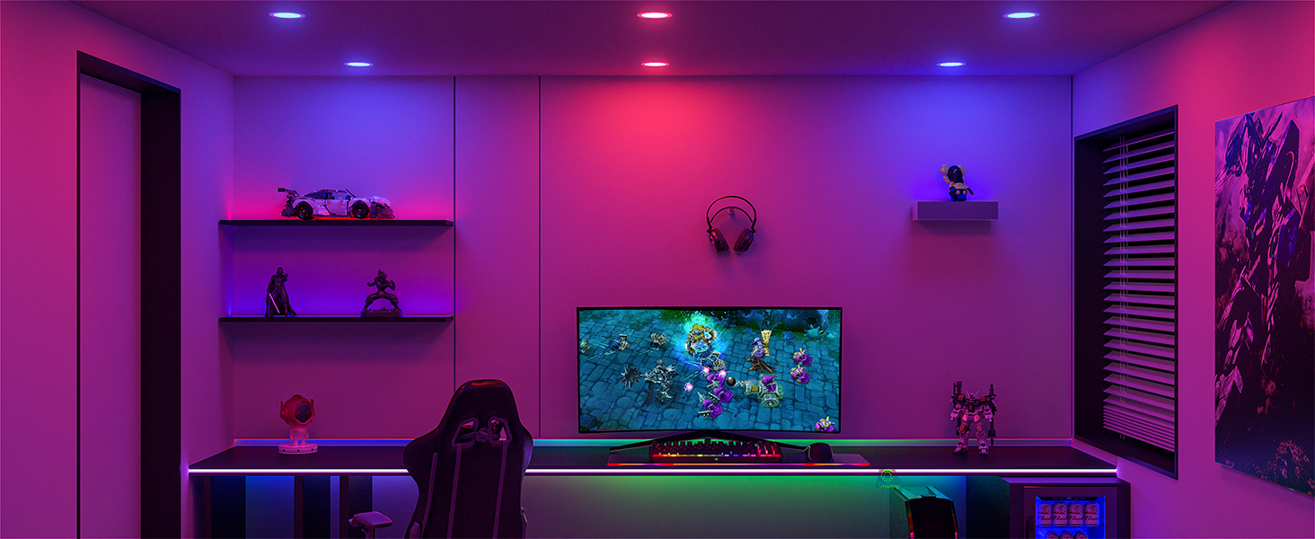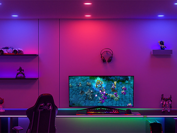 Music Sync: Lights change color in sync with music or game sounds via the app.