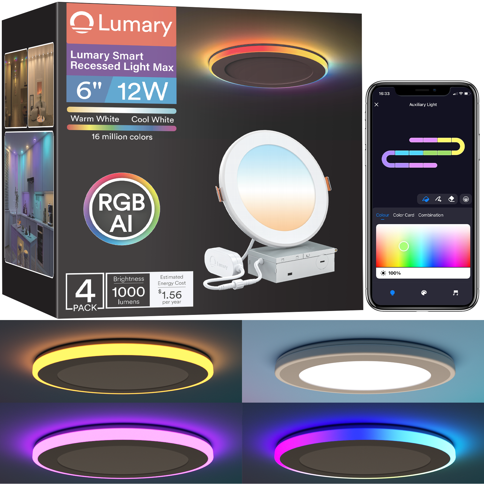 - Lumary Smart RGBAI Recessed Light with Night Light (4" & 6"): Ideal for bedrooms, hallways, and entertainment areas. Create vibrant colorscapes or set a soothing night light with millions of color options.