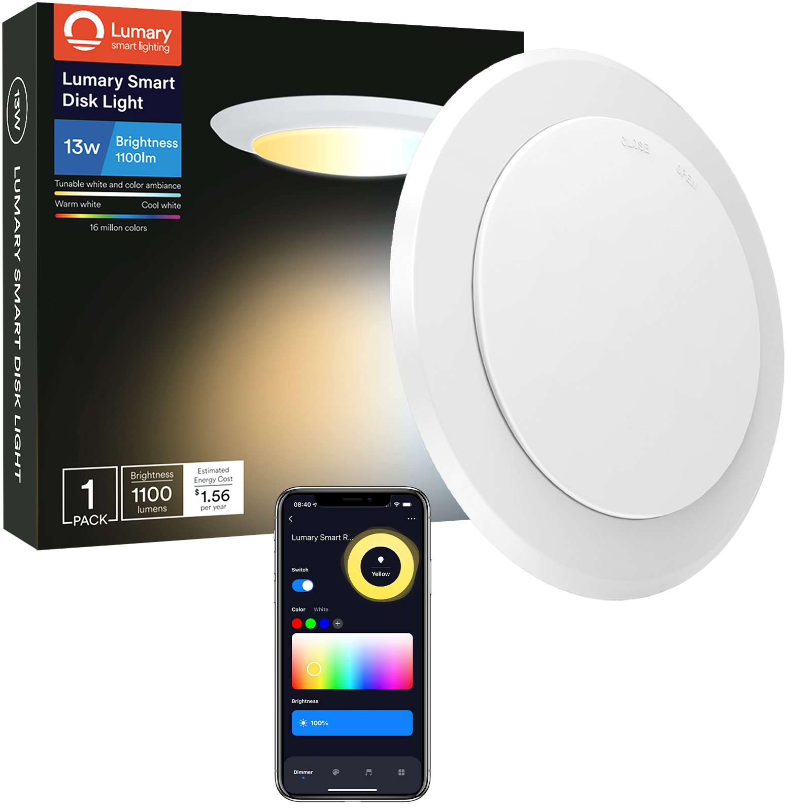 Ultra-Thin Design: At just 1.29” thick, Lumary smart disk lights are perfect for areas with limited height clearance, offering a sleek, modern look for any room.