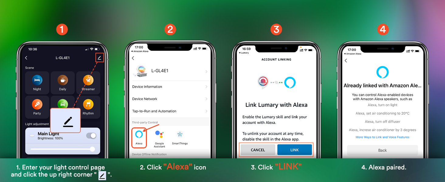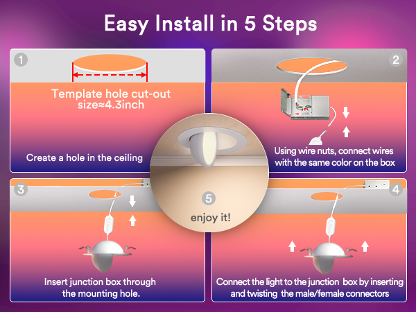 Voice/App Control: Works with Alexa, Google Assistant, and the Lumary app to easily adjust settings like color, brightness, scenes, timers, and group controls. (Note: Supports only 2.4GHz Wi-Fi and isn’t compatible with touch dimmer switches.)