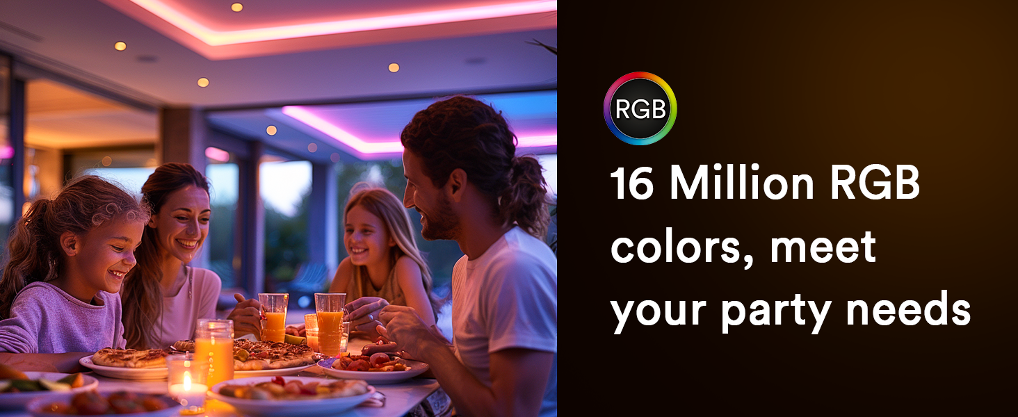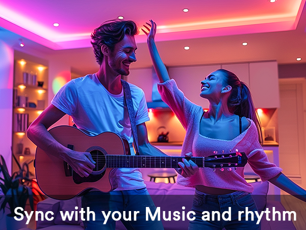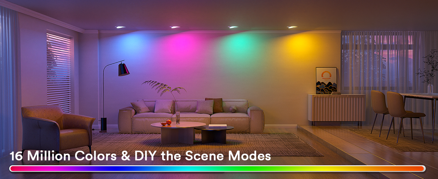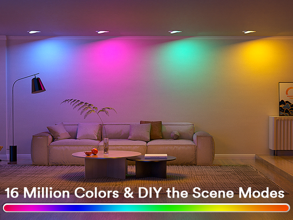 Color Options: Choose from 16 million colors and adjust white tones (2700-6500K). Sync with music for dynamic lighting.