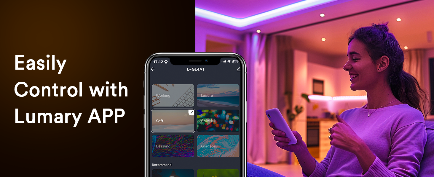 Smart App Control: Use the Lumary app for remote control, group settings, and voice commands with Alexa or Google Assistant. Supports 2.4GHz Wi-Fi only.