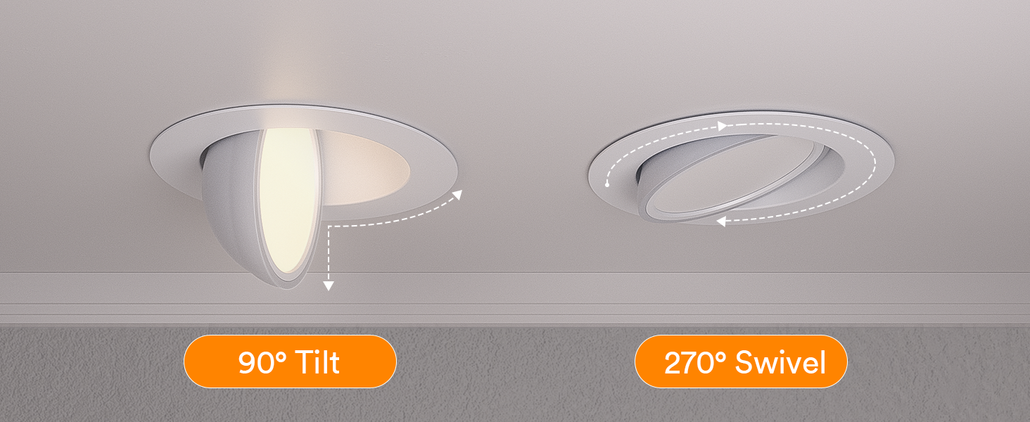 270° + 90° Adjustment: The Lumary 4-Inch Gimbal LED Recessed Light rotates 270° and tilts 90°, with a 100° beam angle for easy adjustment in any setting.