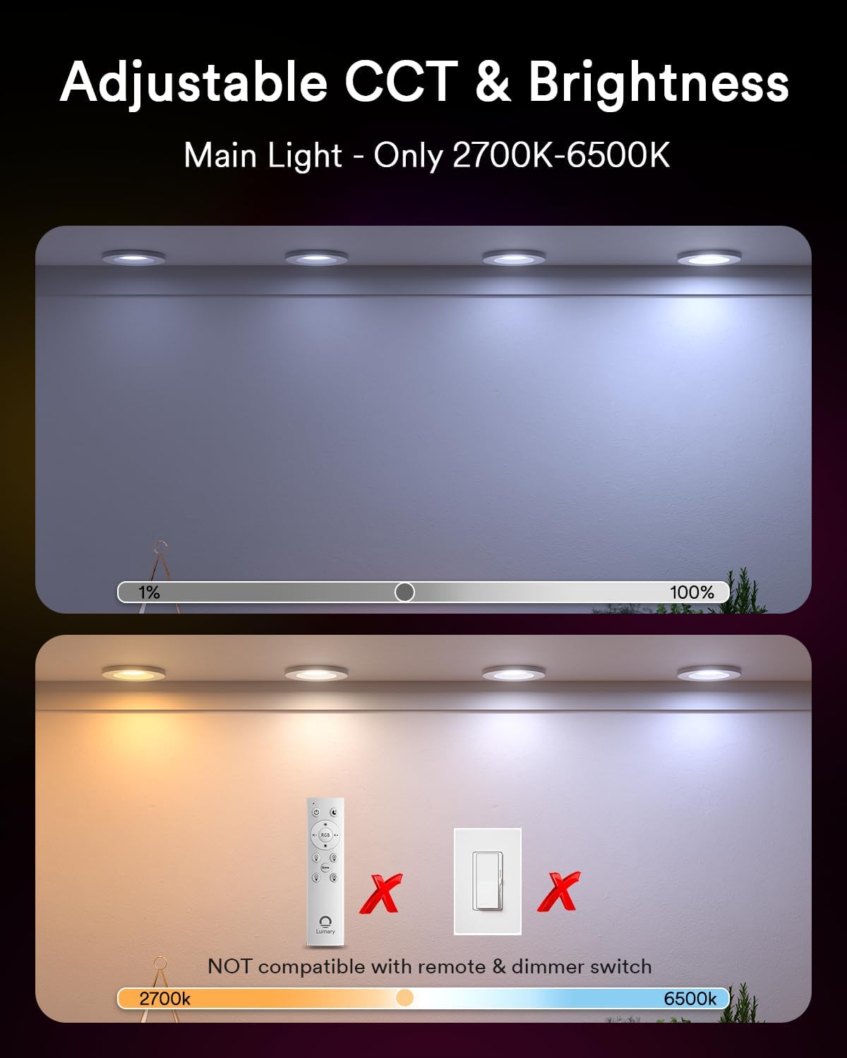 Normally, Lumary Smart Recessed Lighting is as quiet as a mouse, even when the brightness is dialed down or it's in white mode. If you do hear a noise, it could be due to a few things: