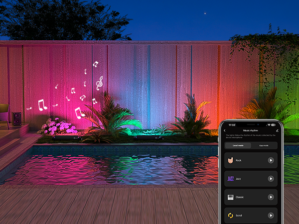 Music Synchronization: Lights sync with music rhythms from your phone or surrounding sounds in local or app mode.