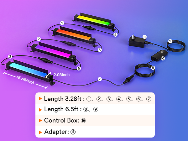 Dynamic RGBAI Effect: 6 individually controllable segments per light for vivid color effects and extensive DIY options.