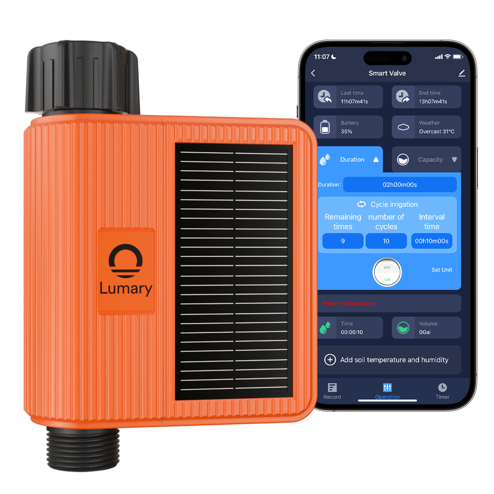Lumary Solar Sprinkler Timer includes a convenient rain delay feature and the ability to view irrigation records. The rain delay function automatically postpones watering after rainfall, preventing unnecessary water use and protecting your garden from overwatering.