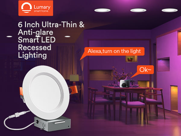 Lumary Recessed Lighting with baffle trim are the easiest ceiling lights to install. It has a wide range of color temperatures (2700-6500k) and 16 million colors (RGB) and can be easily controlled through Lumary APP/Alexa/Google Assistant. The white baffle trim helps diffuse light and reduce unwanted glare White trim ring blends with the ceiling giving a clean and crisp appearance Use. Ultra-thin design for easy installation under joists or in hard-to-reach areas.