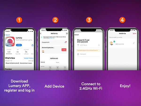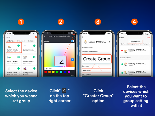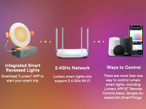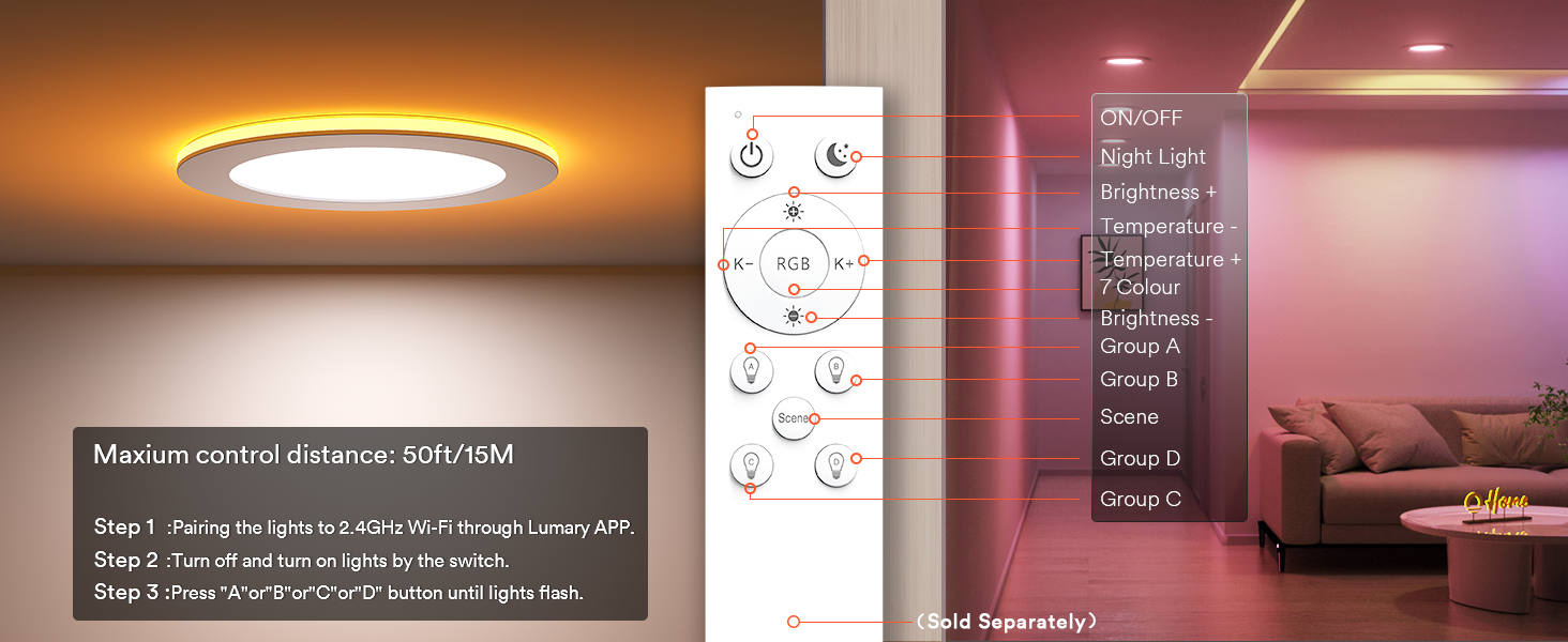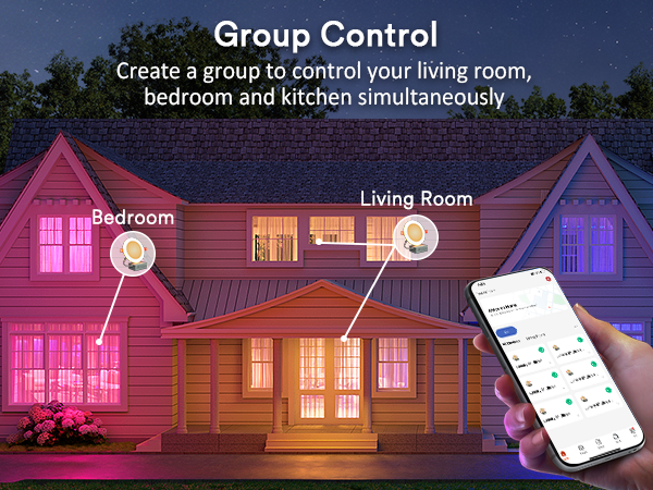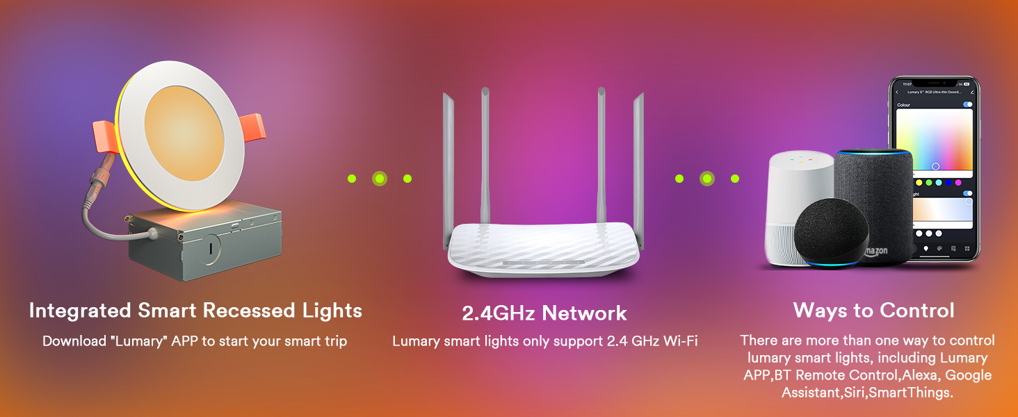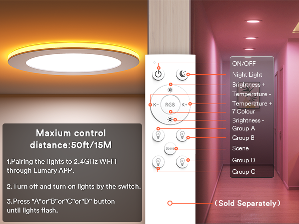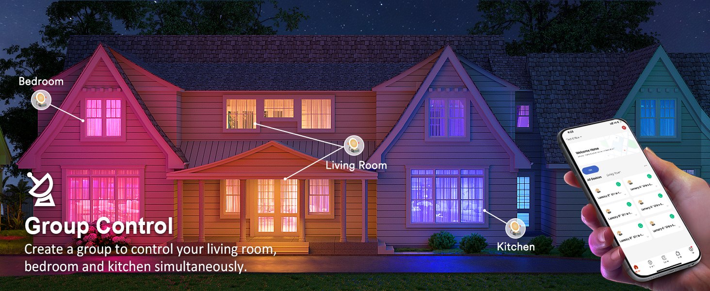 Smart App Control: Use the Lumary app (2.4GHz Wi-Fi) to control your lights remotely, including group control for multiple rooms.