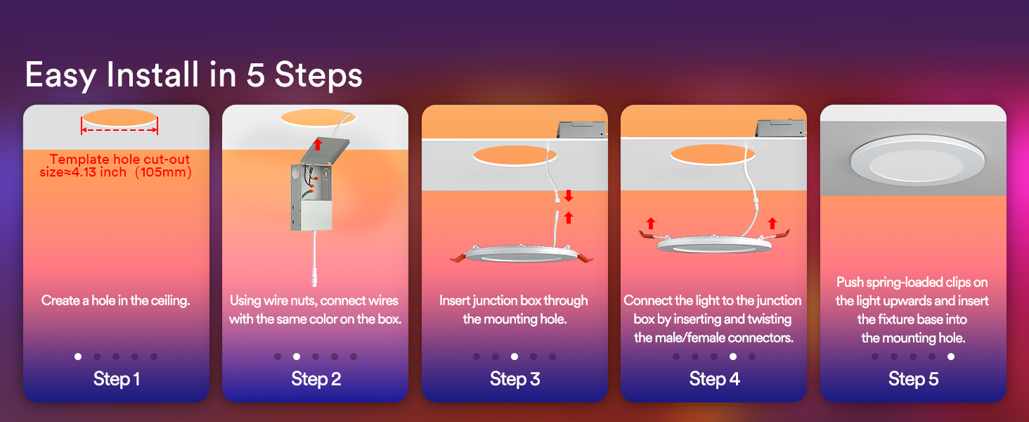 Adjustable Brightness & Color Temperature: Control brightness (1%-100%) and color temperature (2700K-6500K) for optimal comfort and ambiance. Note: Not compatible with dimmer switches.