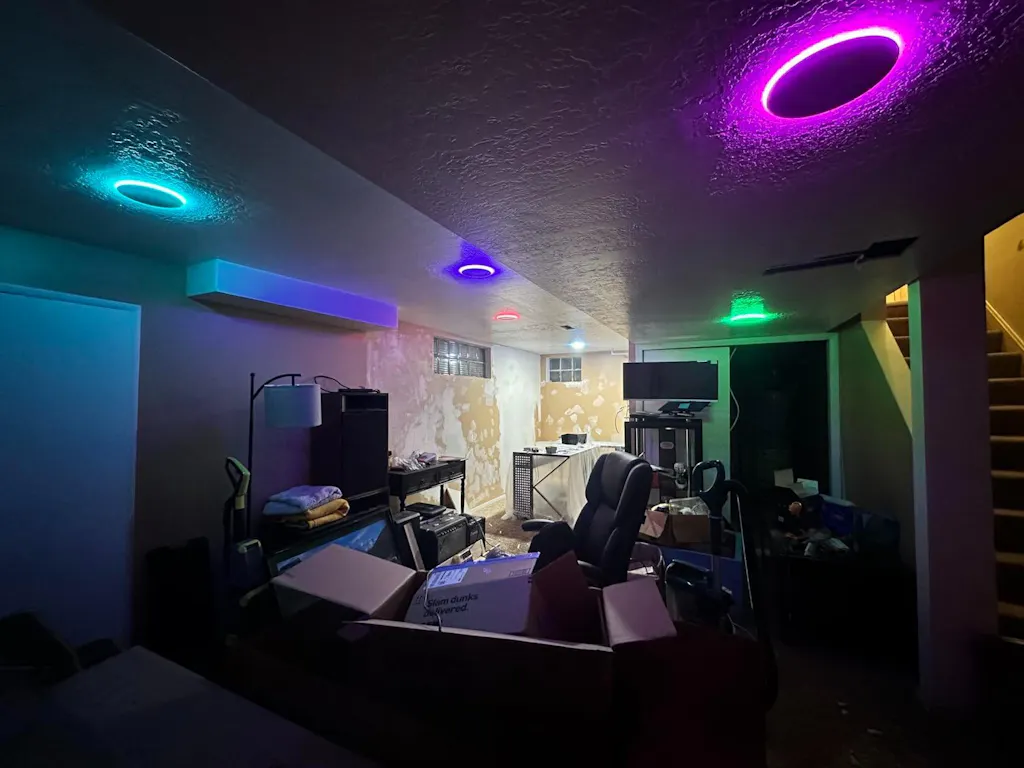 Wish I would have known about the the 2.4 Wi-Fi before hand, they do work Bluetooth so it worked out, as my Wi-Fi in the basement is garbage. Also there is a paid premium version for for more features, kinda dumb. Other than that these things are awesome! Easy to install and remove. They’re not super bright so more is better. I got 8 and thought it might be a lil much but it’s perfect for my situation. 4 stars for the connectivity stuff and the app could be refined. Ps don’t mind the basement itself lol, work in progress.