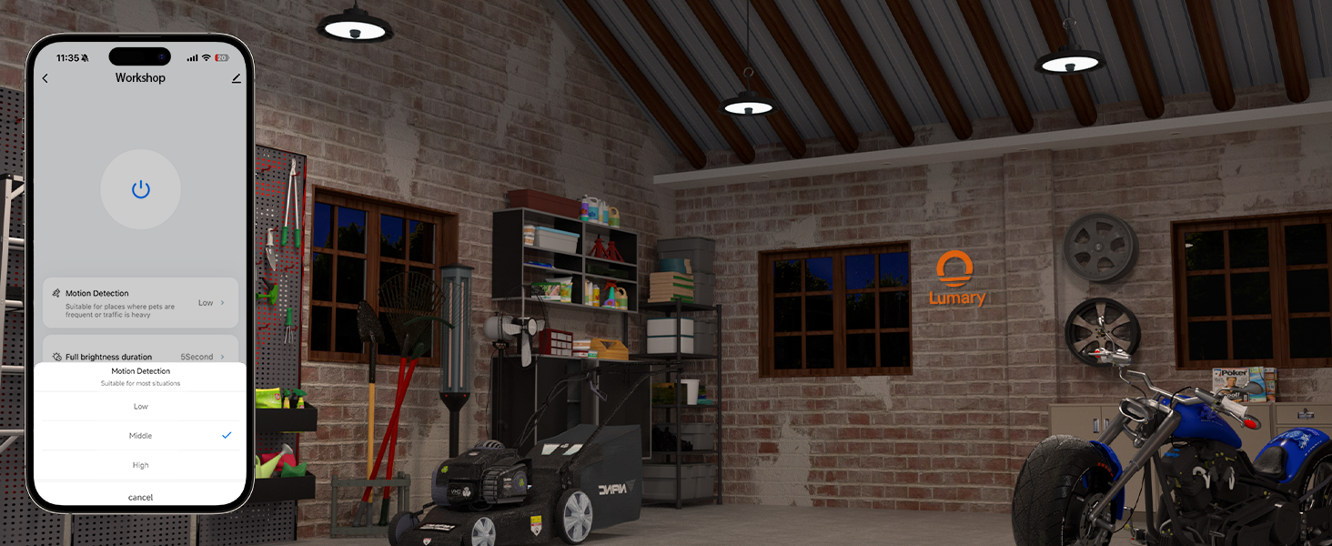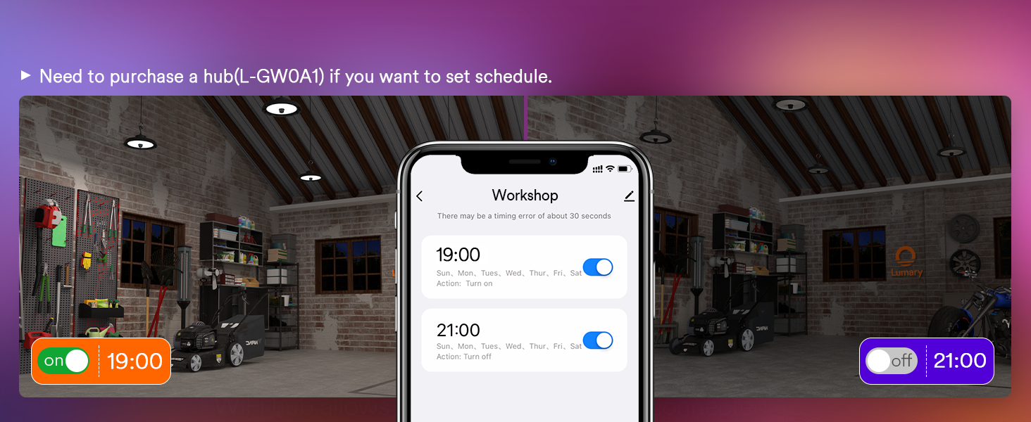 I recently received this "Lumary Smart Hanging Shop Light for Garage w/Motion Sensor Remote, Bluetooth UFO LED High Bay Light 200W 120-277V Metal, Work with Alexa via Hub, Brightness 1-100% 5000K for Workshop Warehouse Gym" and after getting some assistance from Amazon's online customer support, I'm pretty pleased with this light and I'm happy to finally be able to see in the garage!