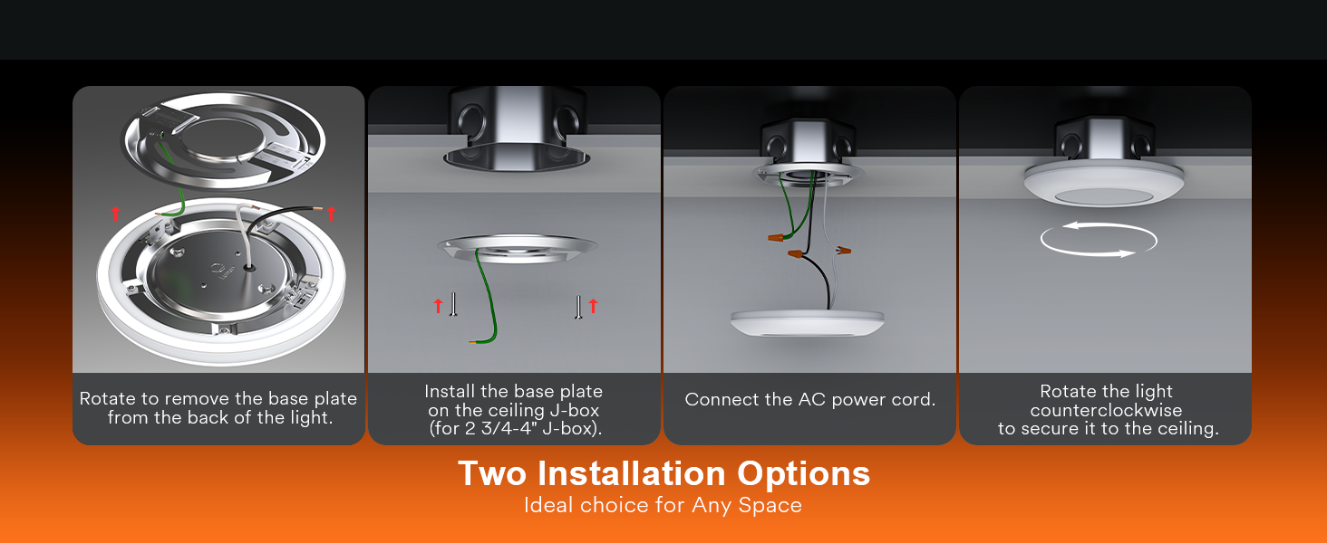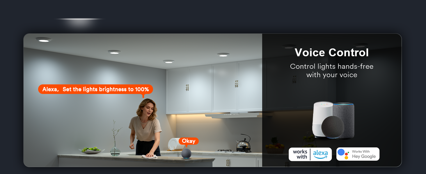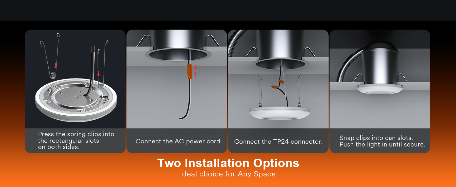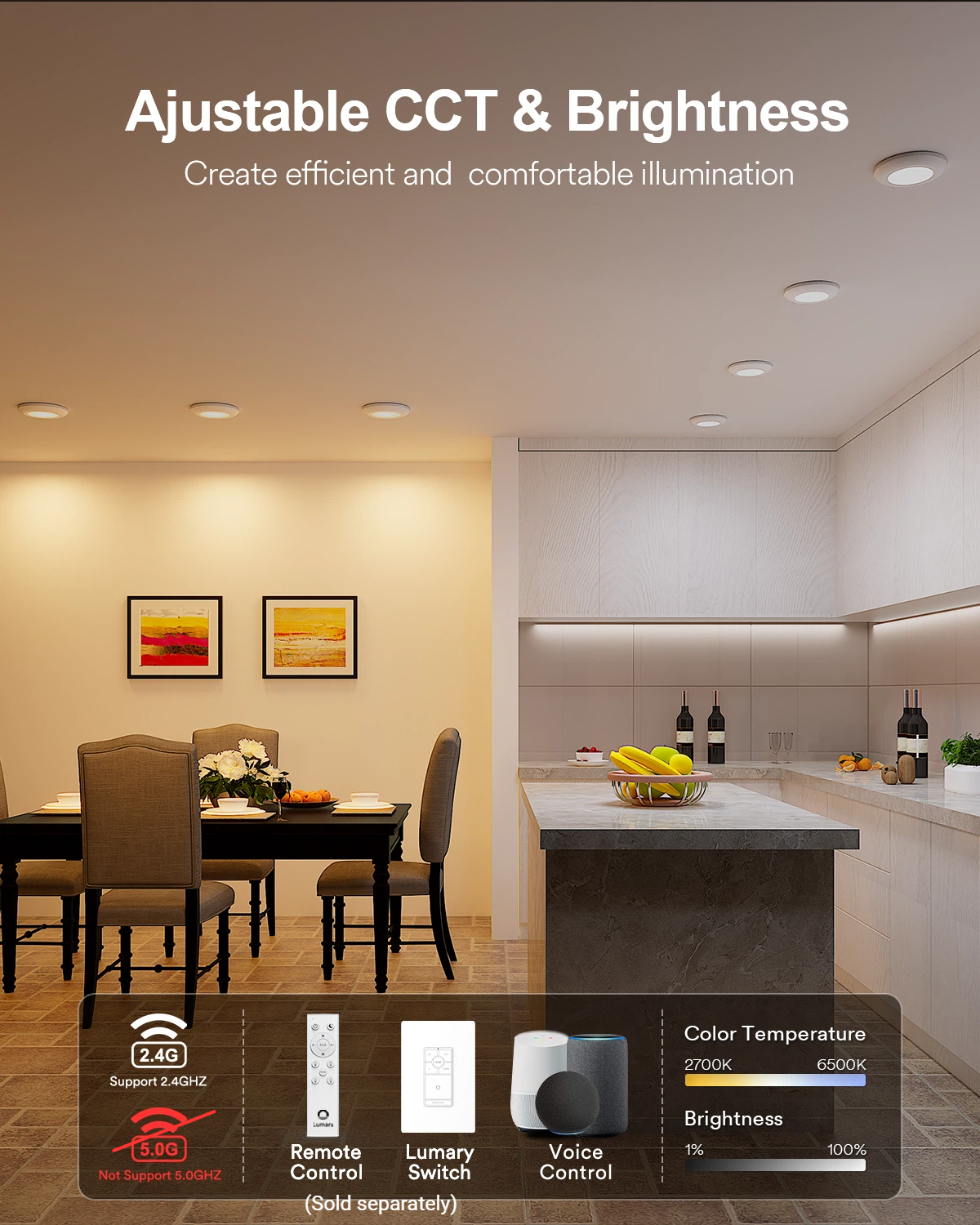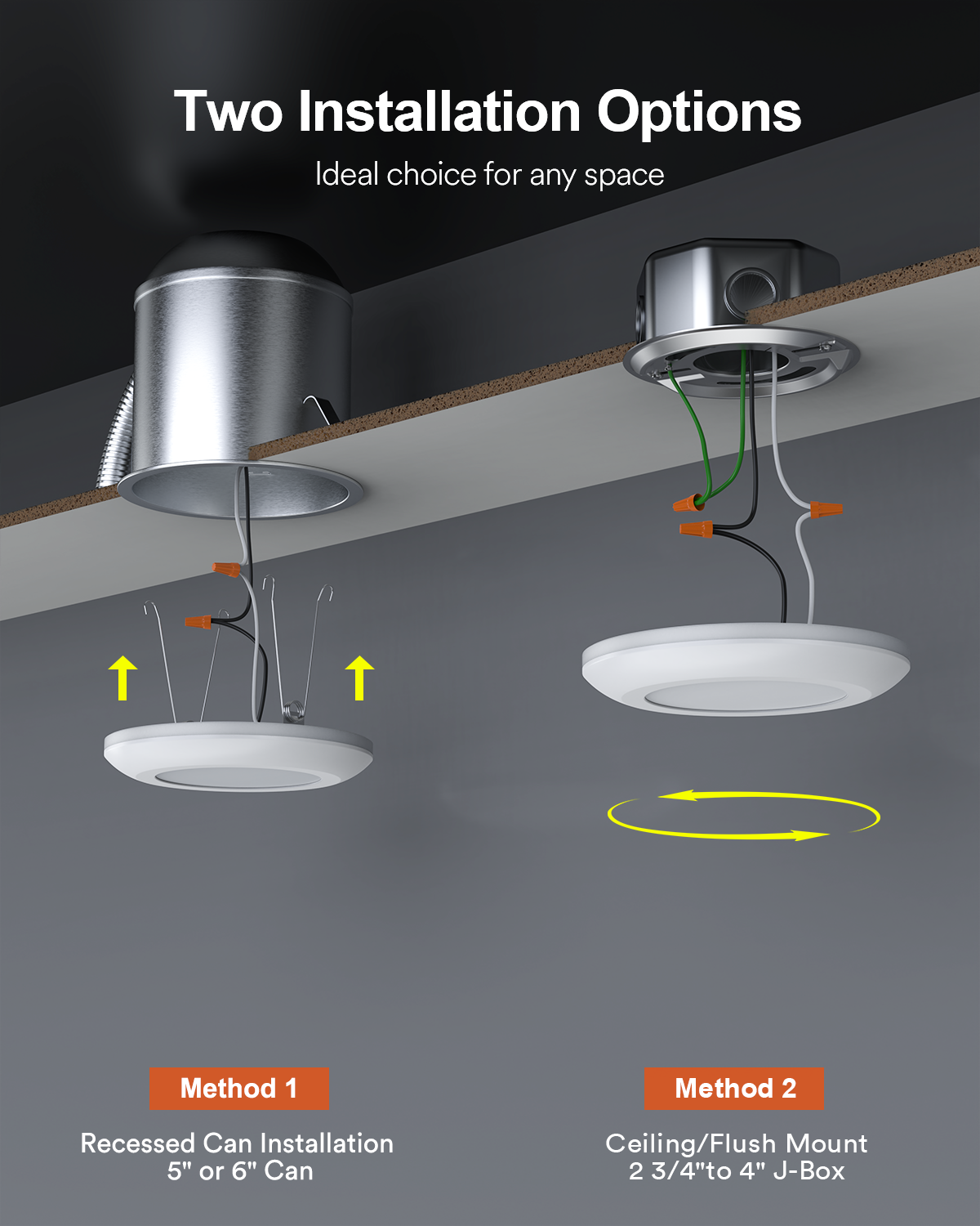 Dual Mounting Options: Designed for versatility, this smart recessed light 6 inch fits standard 2-3/4"–4" junction boxes and 5/6-inch recessed cans. Perfect for new construction or retrofit projects, ideal for living rooms, bedrooms, kitchens, hallways, offices, and more