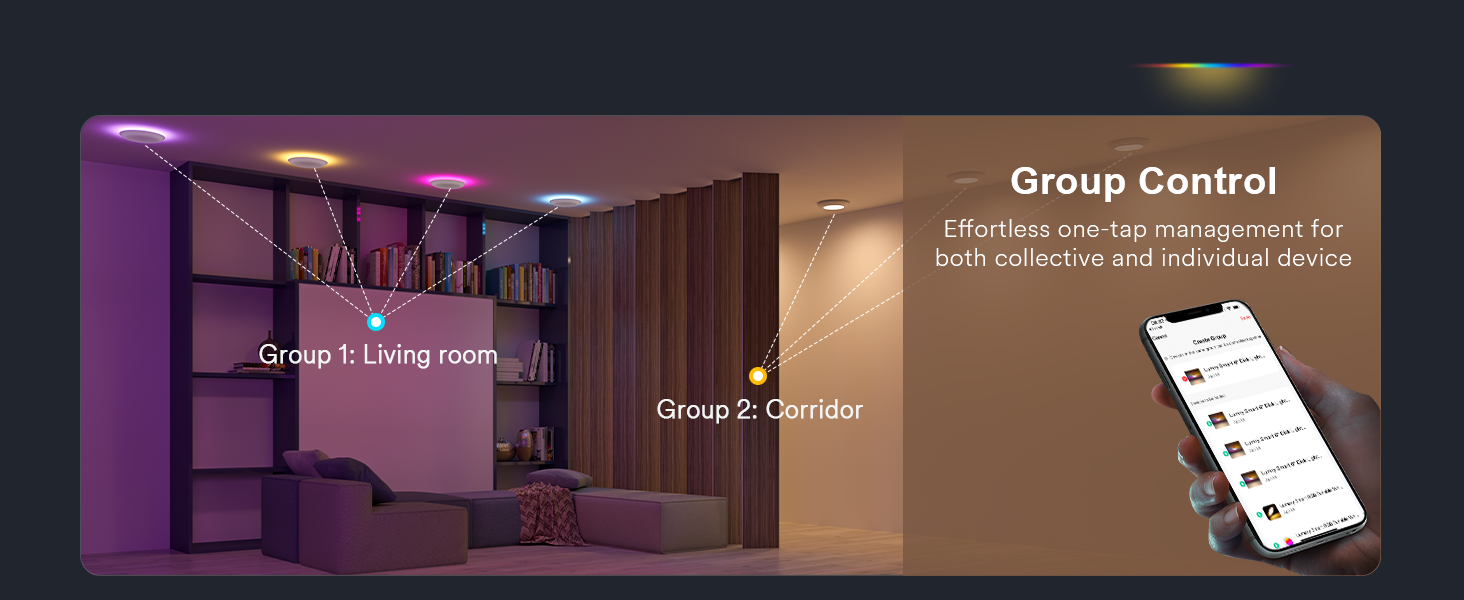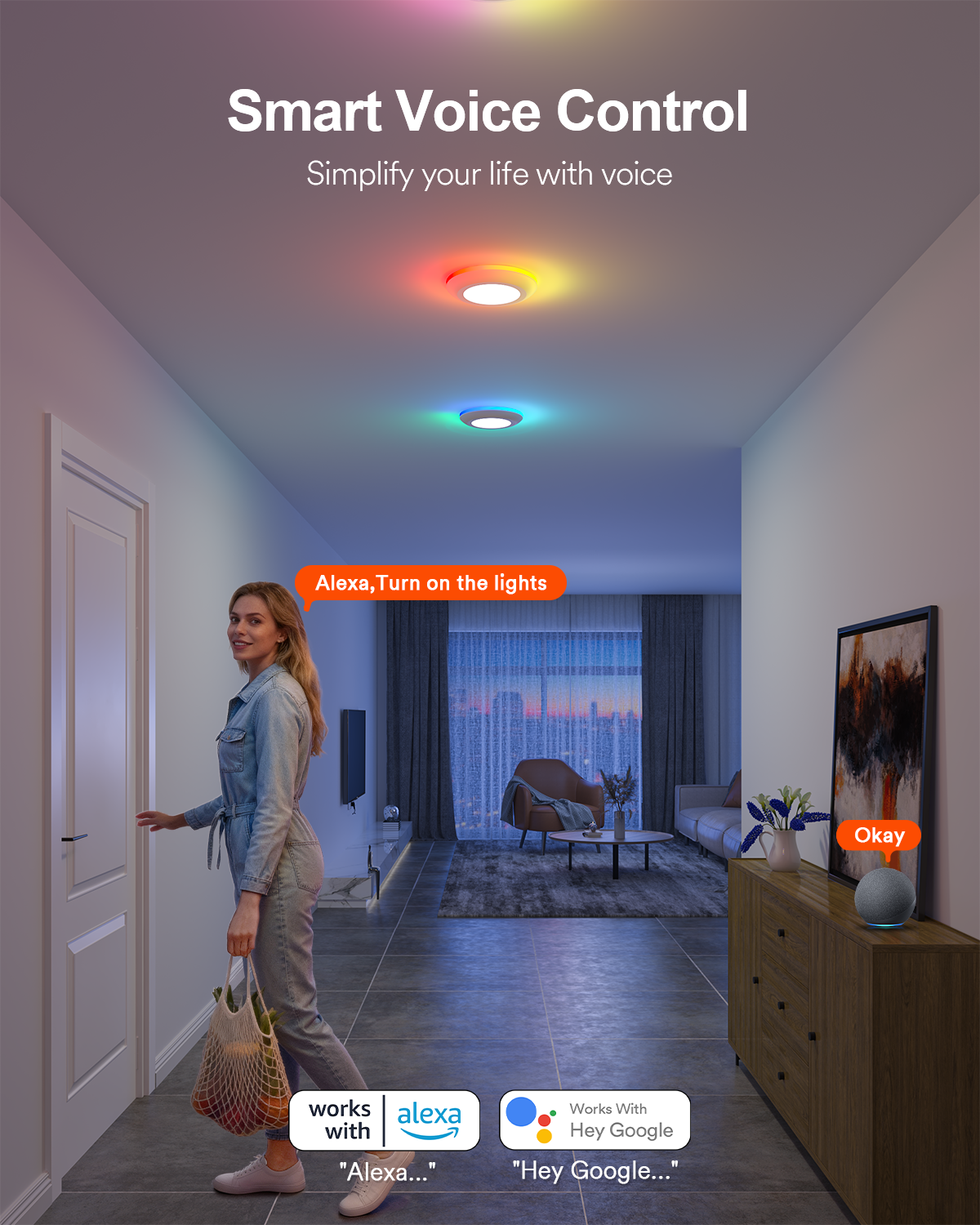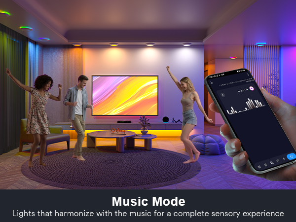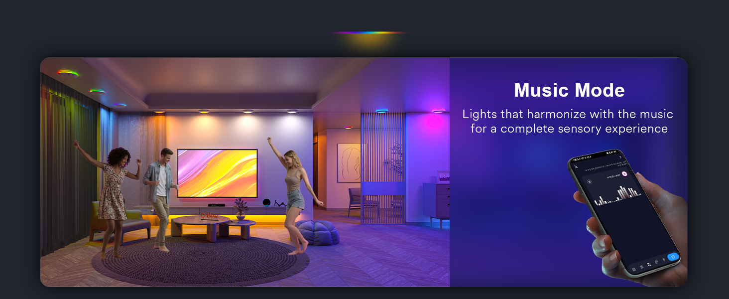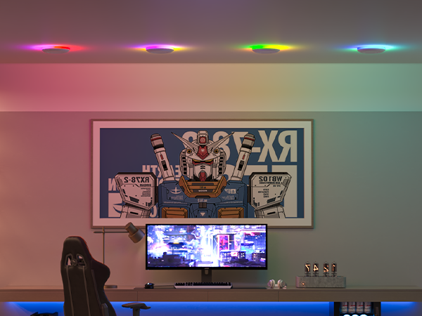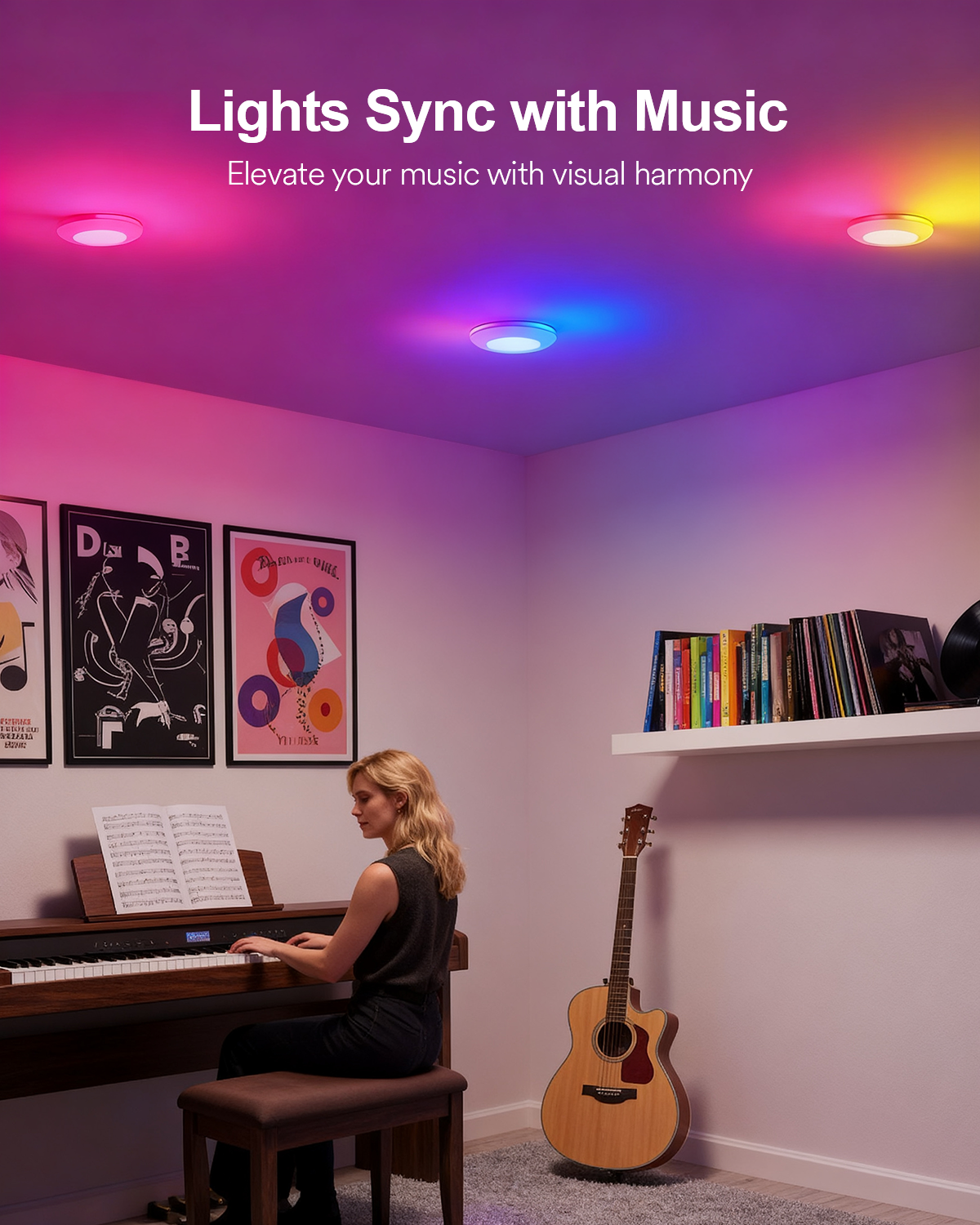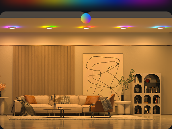 Music Sync: Lumary smart ceiling light will change colors to the beat of music, adding a vibrant visual element to your home entertainment.(For APP only and no built-in microphone or speaker inside the downlight)