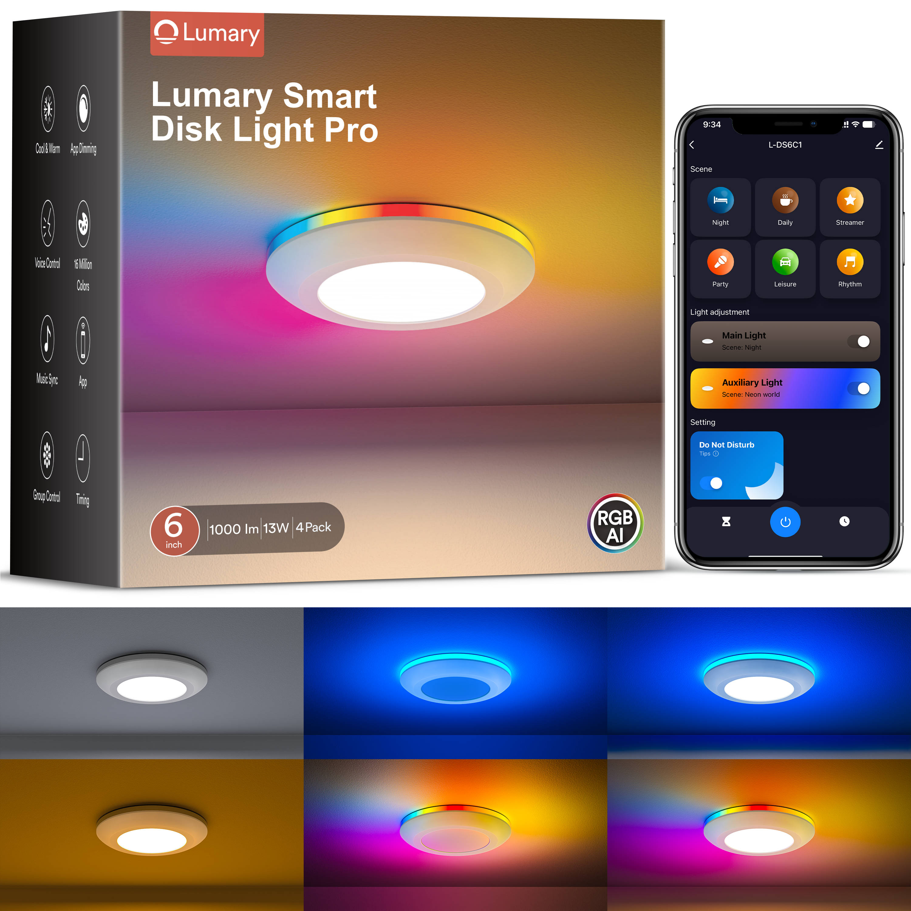 Mutiple Smart Controls: Control your smart led ceiling light anytime via the Lumary App, Alexa, or Google Assistant. Turn on/off, adjust brightness, change colors, or set scenes with a simple tap or voice command (Note: Lumary remote and wall switch sold separately.)