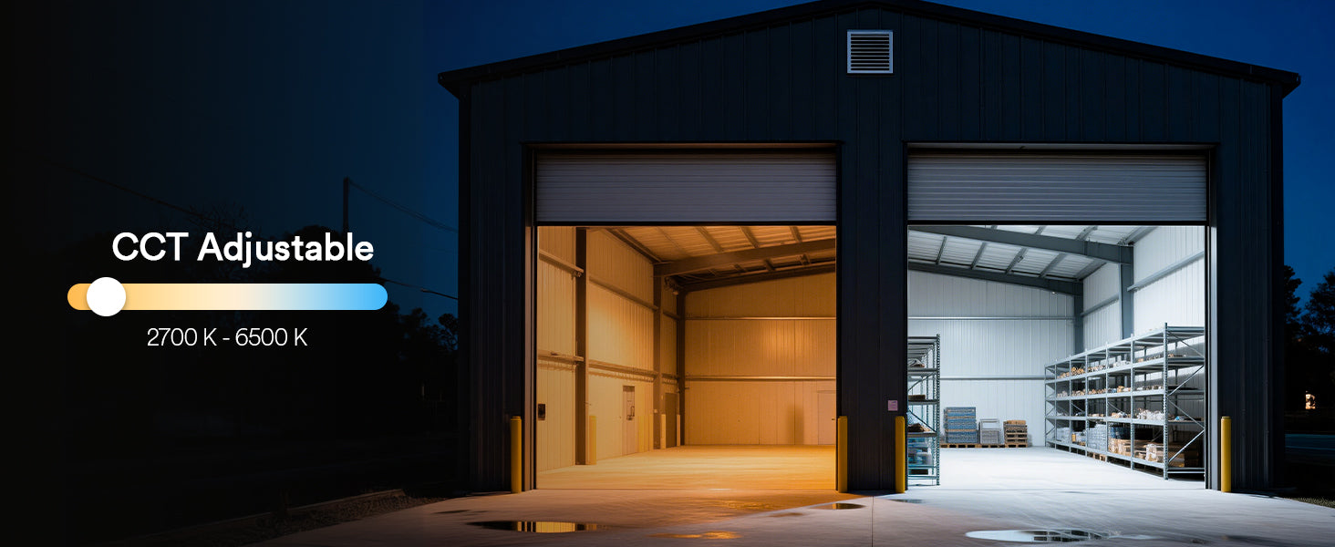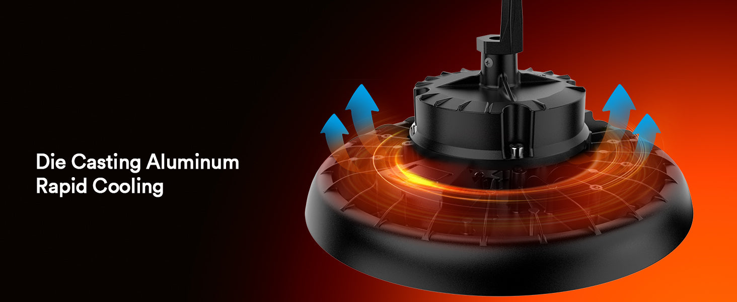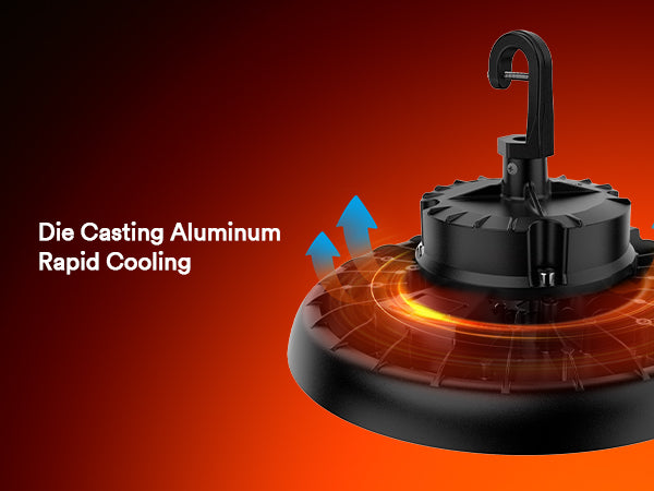 Built to Last: Built with pure die-cast aluminum housing (4.85 lbs) design for rapid cooling. The professional metal structure provides excellent thermal transfer, extending component life and preventing damage. Rated IP65 for dust and water resistance, Lumary High Bay Light is suitable for both indoor and outdoor use. It withstands rain, humidity, and harsh environments from -22°F to 122°F, delivering stable lighting for warehouses, gyms, factories, barns, and other damp or semi-outdoor spaces