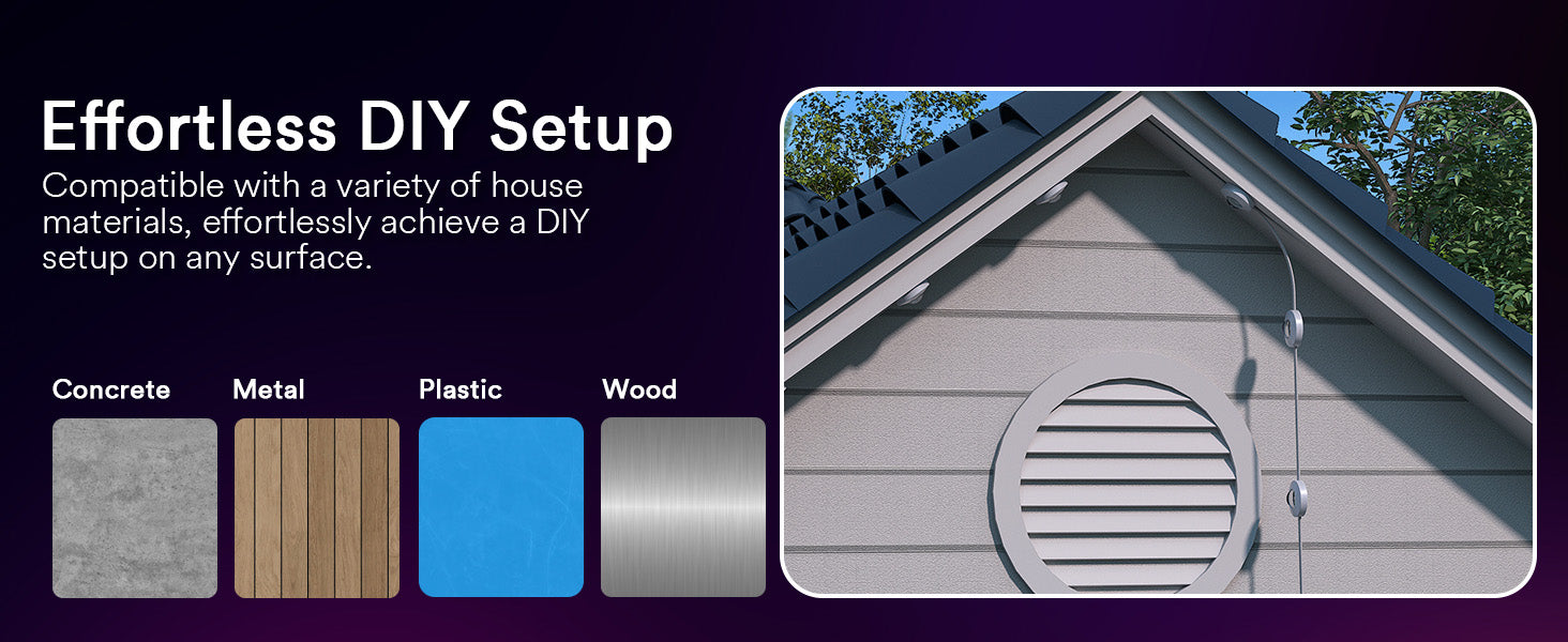 Easy Installation: Securely install with high-strength 3M adhesive tape, nails, and adhesive cable buckles. Supports up to 12 pounds, with a pull strength of 15 pounds.