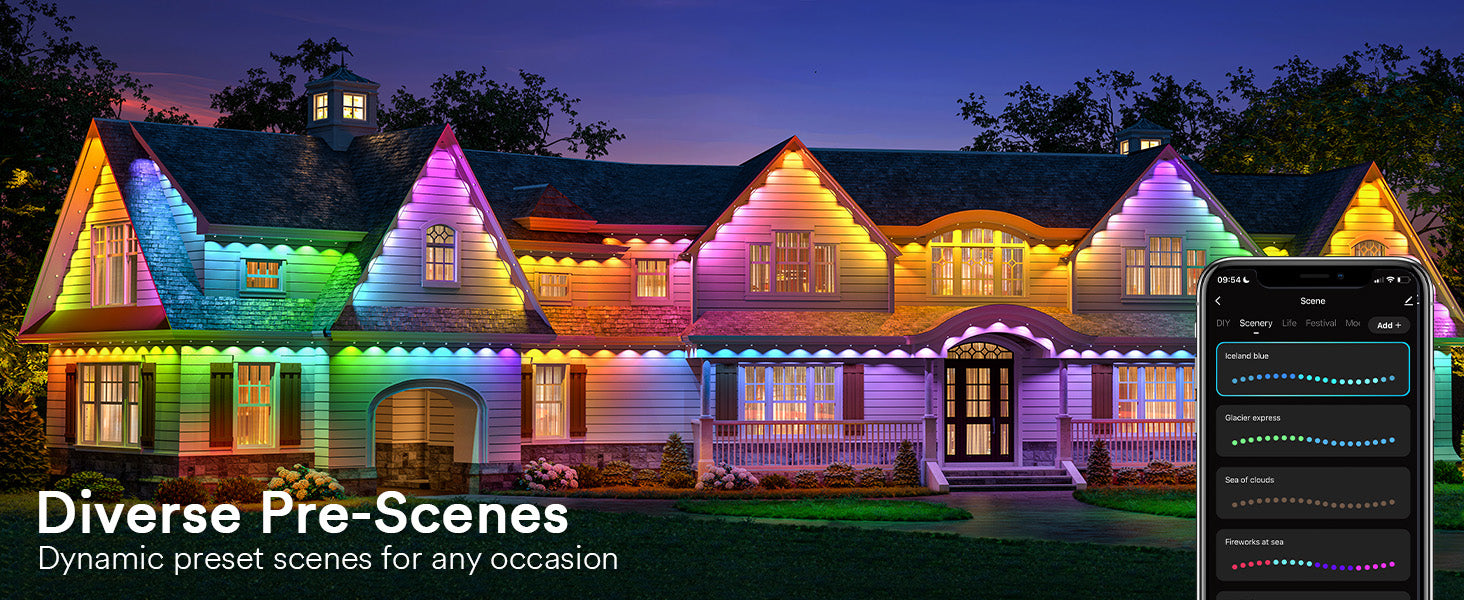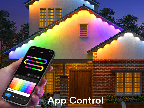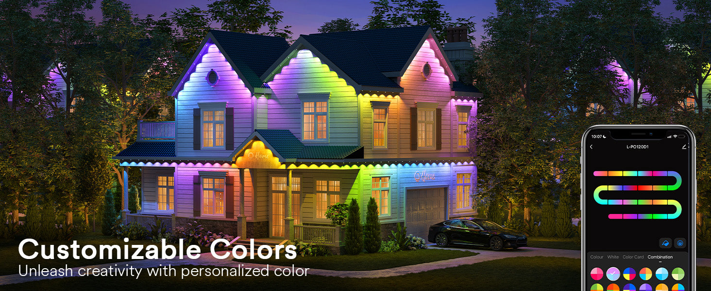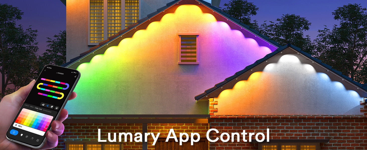 Upgraded LED Beads: Lumary Permanent Outdoor Lights Pro feature advanced RGBAI+WW+CW LED beads, offering up to 48 lumens per light with adjustable color temperatures from 2200K to 6500K.